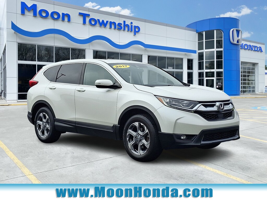 Recent Arrival! 2017 Honda CR-V EX White Diamond Pearl HONDA TRUE USED CERTIFIED....INCLUDES A 100/DAYS/5000/MILES...FULL COVERAGE ...HONDA FACTORY CERTIFIED WARRANTY...CLEAN VEHICLE HISTORY...NO ACCIDENTS, BOUGHT, SERVICED AND TRADED AT MOON TOWNSHIP HONDA, RECENT TRADE IN, SERVICE RECORDS AVAILABLE, MOONROOF SUNROOF, HONDA CERTIFIED, INCLUDES WARRANTY, HEATED SEATS, FUEL SAVER, ONE OWNER, AWD, 18" Alloy Wheels, 4-Wheel Disc Brakes, 6 Speakers, ABS brakes, Alloy wheels, AM/FM radio: SiriusXM, Apple CarPlay/Android Auto, Auto High-beam Headlights, Automatic temperature control, Blind Spot Information (BSI) System warning, Brake assist, Bumpers: body-color, Compass, Delay-off headlights, Dual front impact airbags, Dual front side impact airbags, Electronic Stability Control, Exterior Parking Camera Rear, Four wheel independent suspension, Front anti-roll bar, Front dual zone A/C, Front fog lights, Fully automatic headlights, Heated door mirrors, Heated Front Bucket Seats, Heated front seats, Illuminated entry, Low tire pressure warning, Occupant sensing airbag, Outside temperature display, Overhead airbag, Panic alarm, Power door mirrors, Power driver seat, Power moonroof, Radio data system, Radio: AM/FM Audio System w/6 Speakers, Rear anti-roll bar, Rear seat center armrest, Rear window wiper, Remote keyless entry, Security system, Speed-sensing steering, Speed-Sensitive Wipers, Split folding rear seat, Spoiler, Steering wheel mounted audio controls, Tachometer, Telescoping steering wheel, Traction control, Turn signal indicator mirrors, Variably intermittent wipers. CARFAX One-Owner. Clean CARFAX. Certified. HondaTrue Used Details: