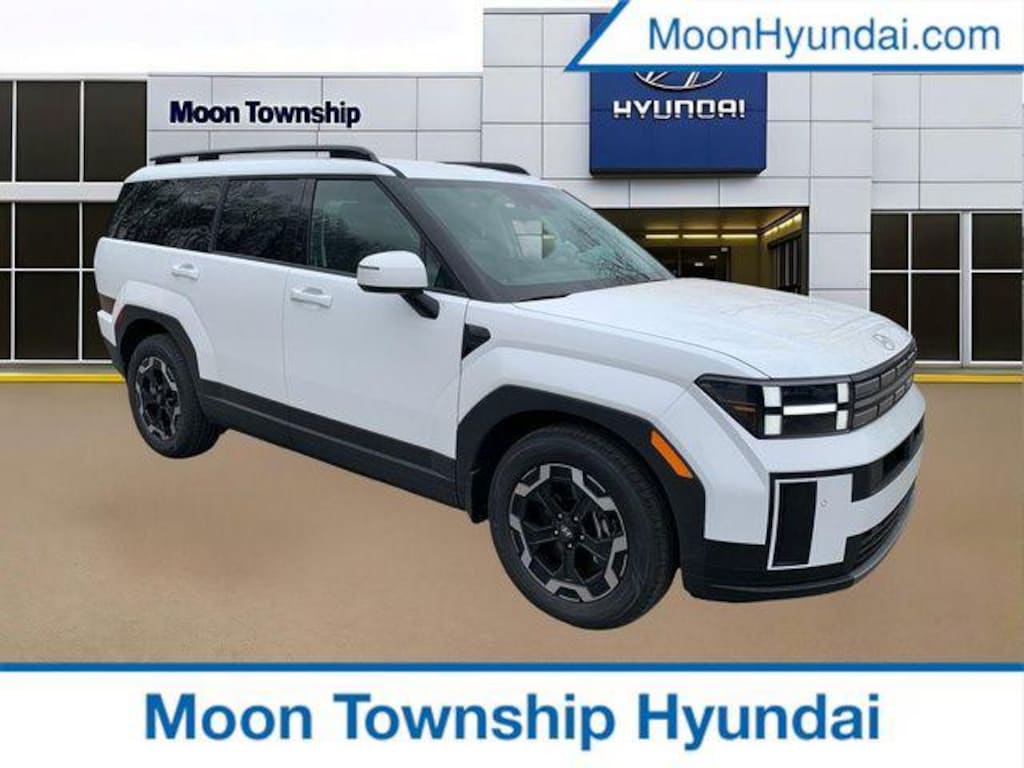 Serenity White 2026 Hyundai Santa Fe SEL AWD 8-Speed Automatic with SHIFTRONIC 2.5L I4 AWD, Black Premium Synthetic.