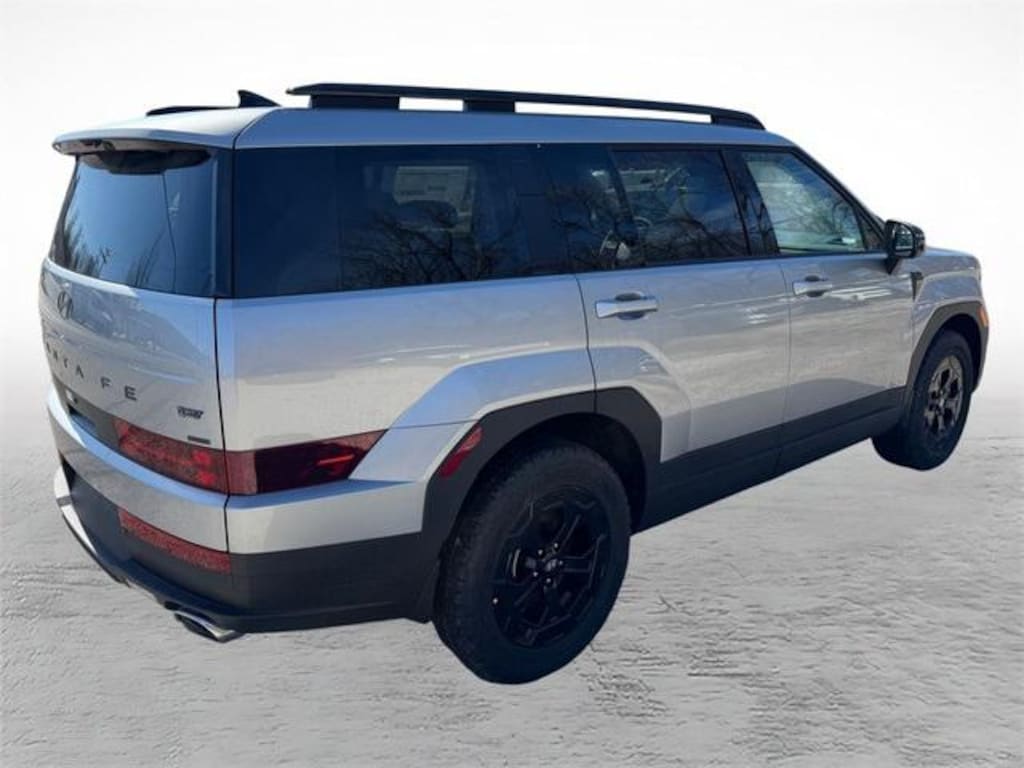 Shimmering Silver Pearl 2026 Hyundai Santa Fe XRT AWD 8-Speed Automatic with SHIFTRONIC 2.5L I4 AWD, Black Premium Synthetic.