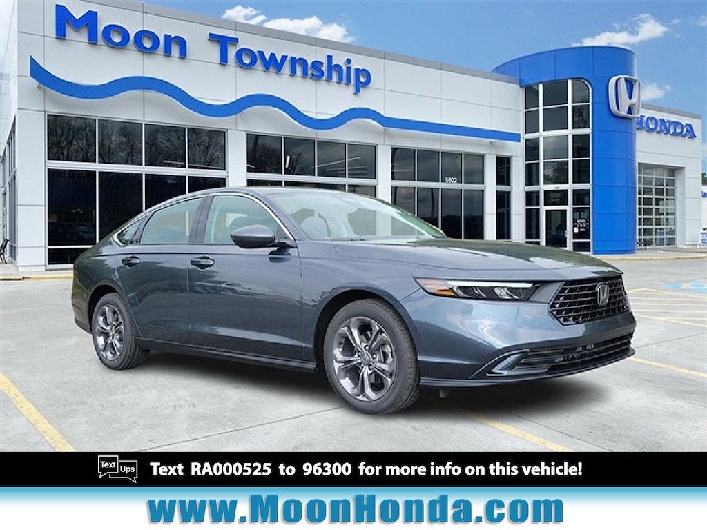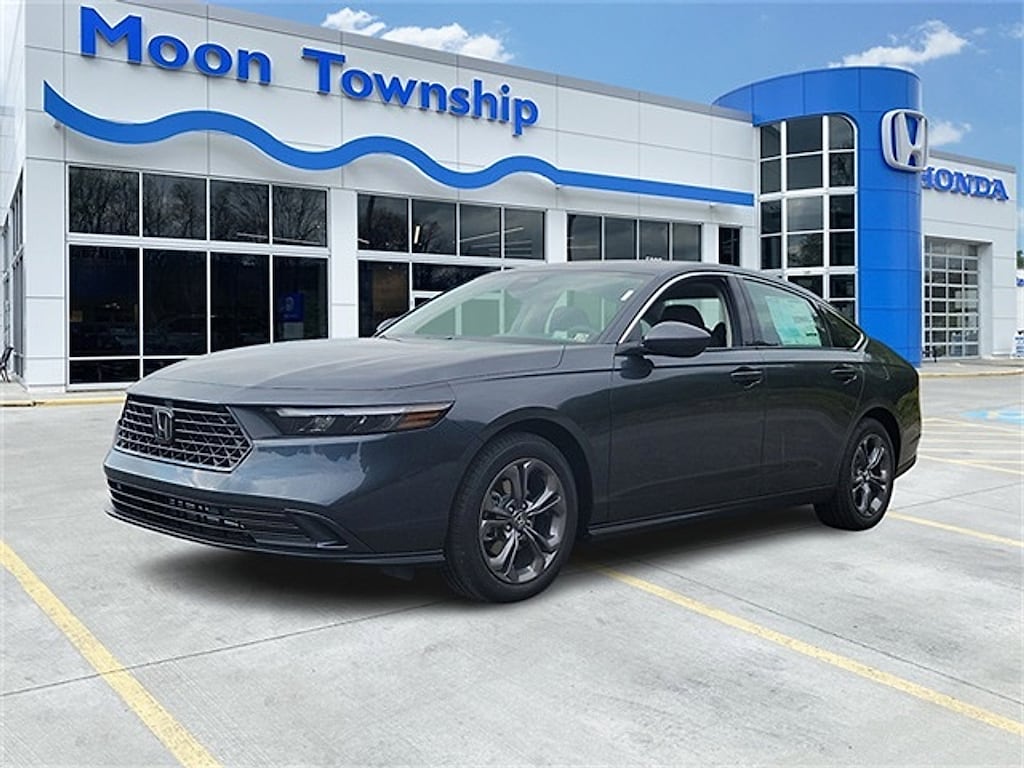 New Price! 2024 Honda Accord EX Meteorite Gray Metallic CLEAN VEHICLE HISTORY...NO ACCIDENTS, BOUGHT, SERVICED AND TRADED AT MOON TOWNSHIP HONDA, RECENT TRADE IN, SERVICE RECORDS AVAILABLE, MOONROOF SUNROOF, REMAINDER OF FACTORY WARRANTY, INCLUDES WARRANTY, HEATED SEATS, FUEL SAVER, ONE OWNER, Black Cloth, 4-Wheel Disc Brakes, 8 Speakers, ABS brakes, Adaptive Cruise Control: Adaptive Cruise Control (ACC) with Low-Speed Follow, Alloy wheels, AM/FM radio, Apple CarPlay/Android Auto, Auto High-beam Headlights, Automatic temperature control, Blind Spot Information (BSI) System warning, Brake assist, Bumpers: body-color, Compass, Delay-off headlights, Dual front impact airbags, Dual front side impact airbags, Electronic Stability Control, Exterior Parking Camera Rear, Four wheel independent suspension, Front anti-roll bar, Front dual zone A/C, Fully automatic headlights, Heated Front Bucket Seats, Heated front seats, Illuminated entry, Knee airbag, Lane departure: Lane Keeping Assist System (LKAS) active, Low tire pressure warning, Occupant sensing airbag, Overhead airbag, Panic alarm, Power door mirrors, Power driver seat, Power moonroof, Radio data system, Radio: 180-Watt AM/FM Audio System, Rear anti-roll bar, Rear side impact airbag, Remote keyless entry, Security system, Speed-Sensitive Wipers, Split folding rear seat, Steering wheel mounted audio controls, Tachometer, Telescoping steering wheel, Traction control, Variably intermittent wipers, Wheels: 17" x 7.5" Pewter Gray. CARFAX One-Owner. Clean CARFAX. 29/37 City/Highway MPG