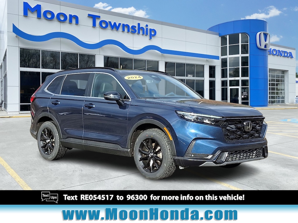 2024 Honda CR-V Hybrid Sport-L Still Night Pearl CLEAN VEHICLE HISTORY...NO ACCIDENTS, BOUGHT, SERVICED AND TRADED AT MOON TOWNSHIP HONDA, RECENT TRADE IN, MOONROOF SUNROOF, LEATHER, REMAINDER OF FACTORY WARRANTY, HEATED SEATS, 2.0L I4 DOHC 16V, 4-Wheel Disc Brakes, 8 Speakers, ABS brakes, Adaptive Cruise Control: Adaptive Cruise Control (ACC) with Low-Speed Follow, Alloy wheels, AM/FM radio: SiriusXM, Auto High-beam Headlights, Auto-dimming Rear-View mirror, Automatic temperature control, Blind Spot Information (BSI) System warning, Brake assist, Bumpers: body-color, Compass, Delay-off headlights, Dual front impact airbags, Dual front side impact airbags, Electronic Stability Control, Exterior Parking Camera Rear, Four wheel independent suspension, Front anti-roll bar, Front dual zone A/C, Fully automatic headlights, Heated door mirrors, Heated Front Bucket Seats, Heated front seats, Illuminated entry, Knee airbag, Leather Seat Trim, Leather Shift Knob, Leather steering wheel, Low tire pressure warning, Memory seat, Occupant sensing airbag, Outside temperature display, Overhead airbag, Panic alarm, Power door mirrors, Power driver seat, Power Liftgate, Power moonroof, Power passenger seat, Radio data system, Radio: 320-Watt AM/FM/HD/SiriusXM Audio System, Rear anti-roll bar, Rear side impact airbag, Rear window wiper, Remote keyless entry, Security system, Speed-sensing steering, Speed-Sensitive Wipers, Split folding rear seat, Spoiler, Steering wheel mounted audio controls, Telescoping steering wheel, Traction control, Turn signal indicator mirrors, Variably intermittent wipers, Wheels: 18" Berlina Black Alloy. CARFAX One-Owner. Clean CARFAX. Odometer is 1760 miles below market average! 40/34 City/Highway MPG Priced below KBB Fair Purchase Price!